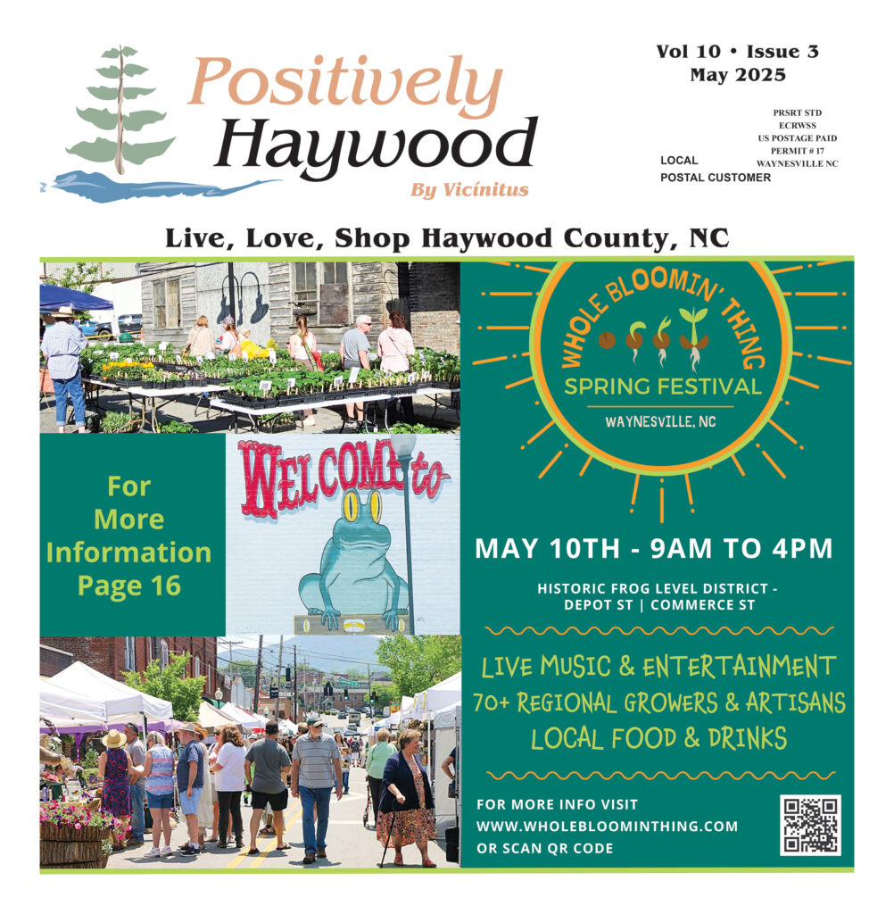Subscribe to Positively Haywood to get your free copy every month, on or about the first of the month, in your mailbox anywhere in Haywood County. You’ll find events, activities, community initiatives and more to live life local!